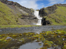 Vous longez le lit de la Skaftá le long duquel, en 1783, les cratères du Laki crachèrent les laves du Skaftareldar, « les feux de la Skafta ». Il s’agit de la plus grande production de lave des temps historiques. Cette éruption a duré plus d’une année et a entraîné la disparition de près d’un tiers de la population isalndaise suite aux épidémies et famines qui s’ensuivirent.